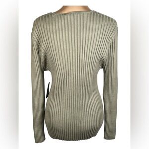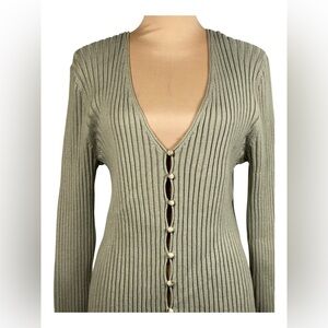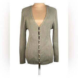 WayF Frenchie Women's 1X Green Rib Knit Pearl Button V-Neck Cardigan Sweater NWT