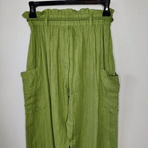 Wayan Natural Wear Cotton Cargo Pants Green Rope Waist Tie Travel Size Small