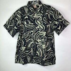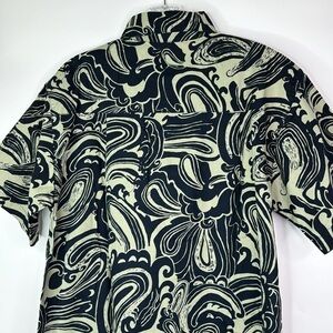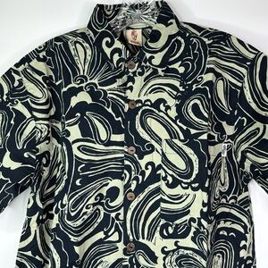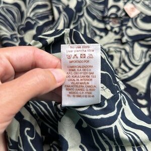 Wayan Natural Wears Tropical Button Down Navy Blue Shirt Large