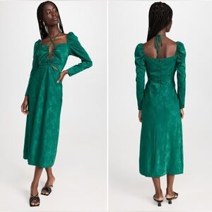 Wayf Adeline Green Floral Cut Out Midi Dress in great condition.