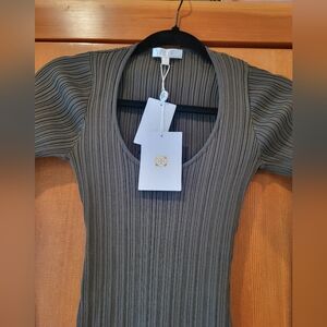 NWT. Stretchy ribbed knit construction creates a curve hugging fit. Scoop neck and tie at waist. So flattering.