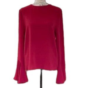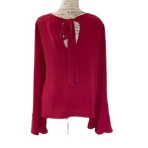 Beautiful blouse in "Deep Claret" with bell sleeves and a keyhole and tie behind the neck. Model's photo provided for reference only.