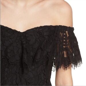 Wayf Black Lace Off the Shoulder Mini Cocktail Dress, M