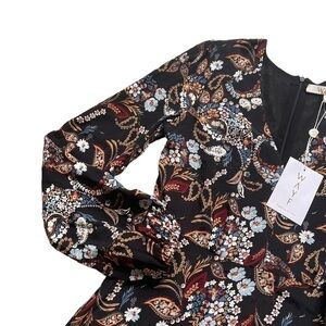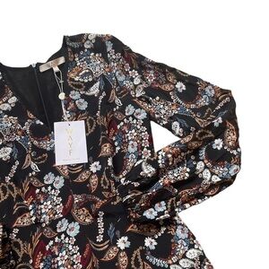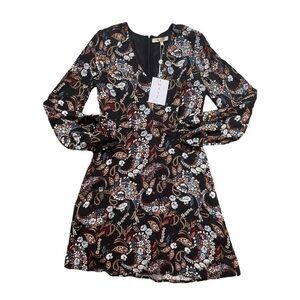 New With Tags •Wayf •Black •V Neckline •Long Sleeve •Mini Dress •Floral Print •Lined •Back Hidden Zipper •Floral Paisley •Date Night •Party •Casual