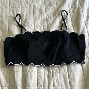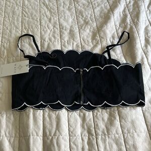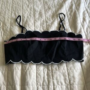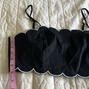Stylish black crop top with scalloped edges. Zipper closure in the back. Perfect for casual outings. May have pet hair on garment