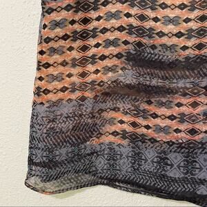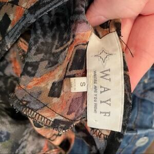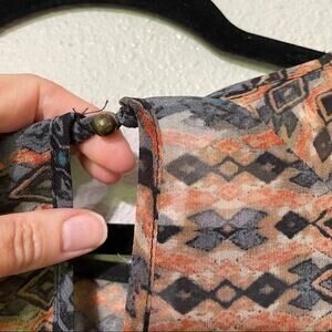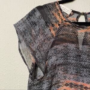 Wayf Blue & Tan Sheer Printed Short Sleeve Blouse Womens S Boho Fall Shirt Top