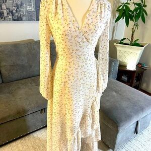 😍🌸 Wayf Cream Ruffled Tiered Long Sleeve Sundress🌸❤️🔥