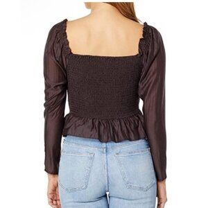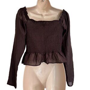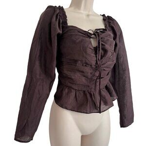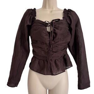 Wayf Cropped Brown Blouse Rushed Lined bodice Size Medium Long Sleeve NWT