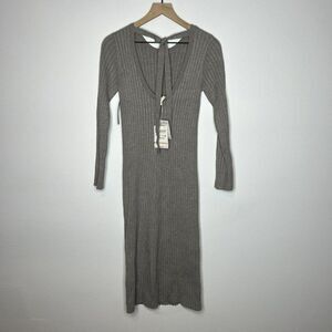 Wayf Dede Emily Ribbed Bodycon Sweater Dress S Small Gray Open Back Bow Tie NWT