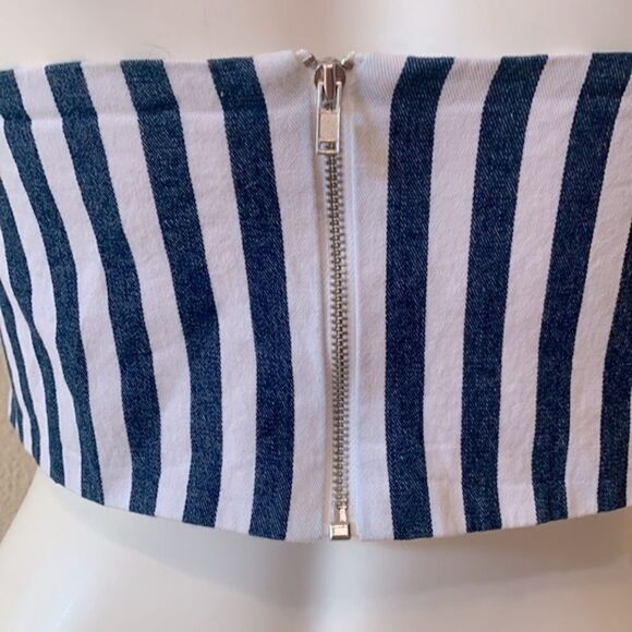 Crisp stripes highlight the knotted front of this preppy, retro-inspired tube top.