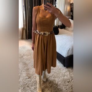 Wayf Faux Suede Tan Midi Dress with Pockets