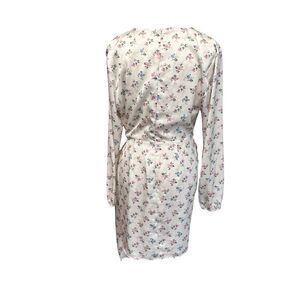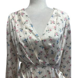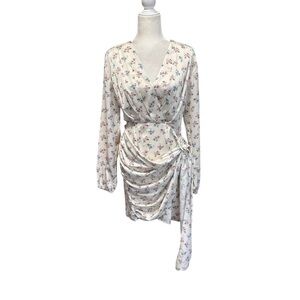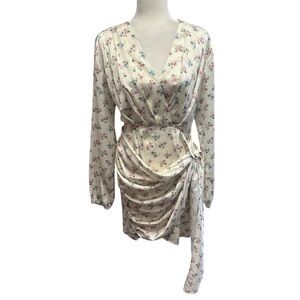 Wayf Faux Wrap Ditsy Floral Mini Dress Coquette Long Sleeve V neck Satin Size M