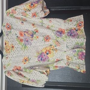 Wayf Floral Eyelet Puff Sleeve Peplum Top Size XS