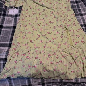 Embrace a fresh look with this floral green skirt. Perfect for any occasion, it offers a stylish and comfortable fit.