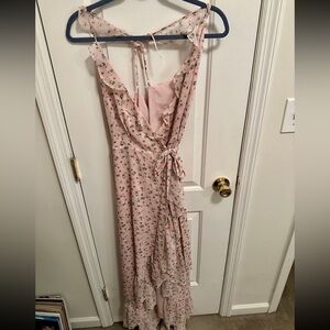 This stunning Wayf sundress in a rich purple hue is perfect for wedding guests and cocktail events. It features a sleeveless design with a flattering V-neckline and a stylish high-low hemline. The dramatic slit adds a touch of elegance and movement to this chic dress.