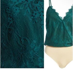 Wayf Lace Bodysuit, Size Small 💚 wrap around, snap closure, spaghetti straps