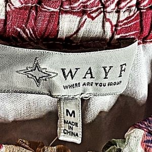 WAYF medium pink and white floral baby doll crop top. gathered elastic neckline, can be worn on or off the shoulders.