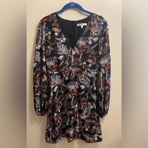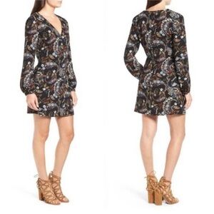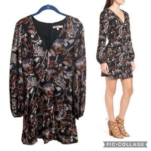 Wayf Malone Paisley Black Floral V-Neck Mini Swing Dress Size Small Fall