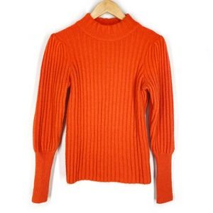 Wayf Miles Puff Sleeve Sweater Red Orange Rib Knit Turtleneck Stretch Cozy XS