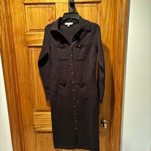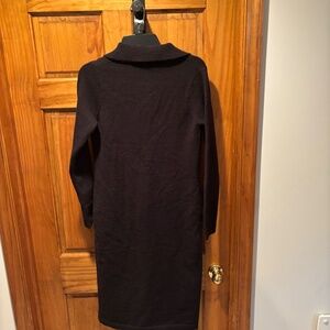 Wayf Morgan Long Sleeve Midi Sweater Dress in black. Front button closure. Spread collar, long sleeve. Front button patch pockets. Women's size small. Gently used with no flaws.