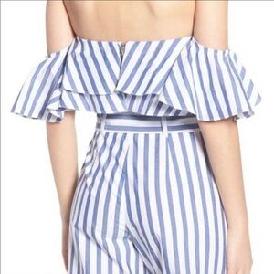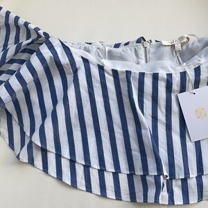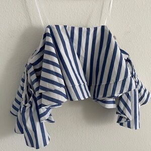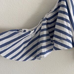 Wayf Navy Striped Crop Top. Off shoulder style with a layered look. Cropped fit zipper on the back.
