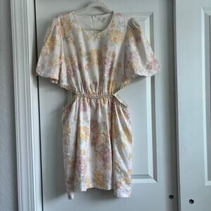 Wayf Plaza Cut-Out Minidress Yellow Garden Party Floral Feminine Sz XL Cocktail