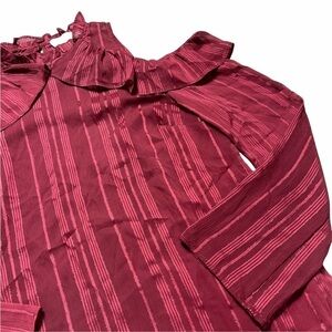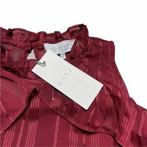 New With Tags •Wayf •Red •Metallic Stripes •Cold Shoulder •High Neckline •Long Sleeve •Keyhole Backing •Holiday •Festive •Ruffled Bust