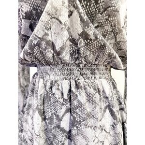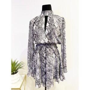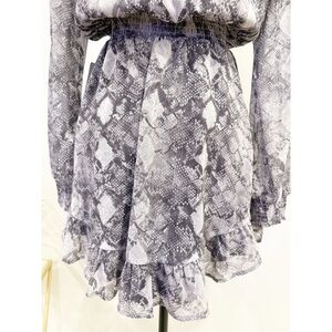 Wayf Revolve Women's Snake Print Chiffon Keyhole Metallic Ruffle Mini Dress Smocked