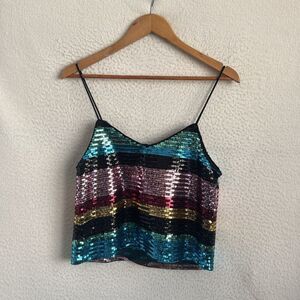Wayf Sequin Tank Top Womens Small Black Pink‎