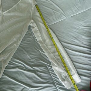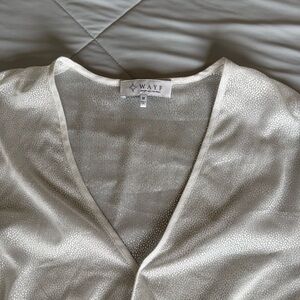 Wayf Shimmering Speckled White V-Neck Blouse Mesh See through