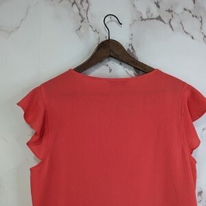 Wayf Shirt Womens Large Pink Salmon Coral Peplum Flutter Tie V Neck Crepe Blouse