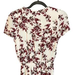 Wayf Short Sleeve Floral Cream Red V Neck Cap Sleeve Maxi Dress Size XS