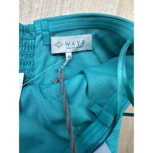 This Wayf mini dress is perfect for any occasion, whether it be a graduation party or a wedding. The strapless, pleated top and smocked back create a unique and stylish design. The dress is made of cotton and rayon fabric and is lined for added comfort.