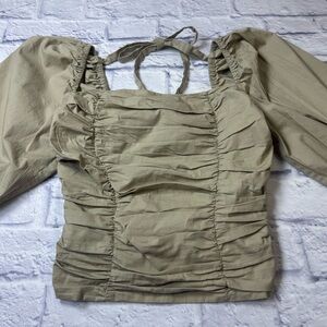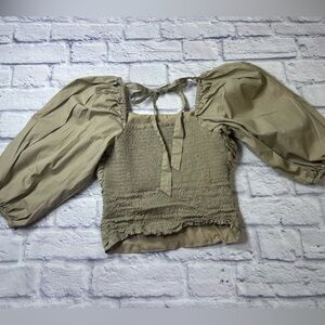 Wayf Tan Puff Sleeve Blouse. Coquette. Coquette Girl. Feminine.