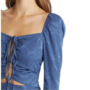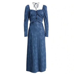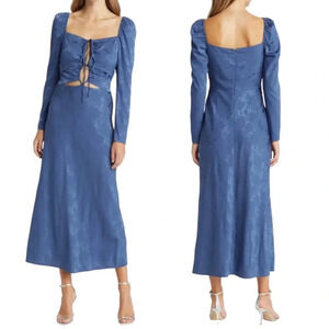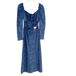 Wayf The Adeline Cutout Floral Jacquard Halter Midi Dress Blue Size XXS NWT