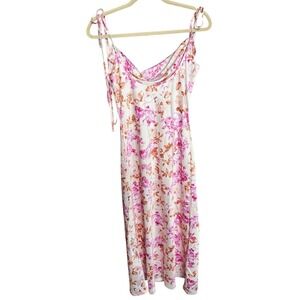 Wayf The Beverly Cowl Neck Midi Dress Pink Floral XS Spring Summer Vacation