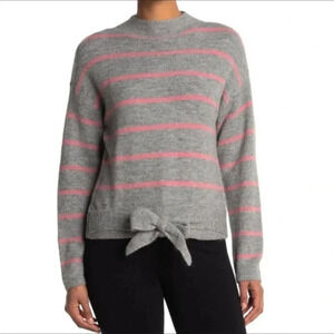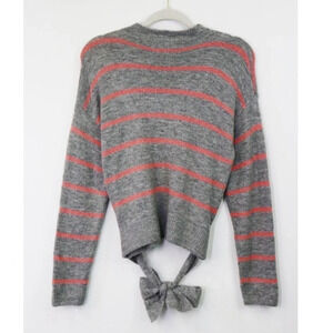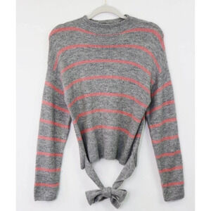 Wayf Tie Front Long Sleeve Striped Sweater Blouse M Grey Pink