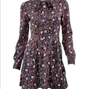 Wayf Tie Neck Long Sleeve Skater Dress Size