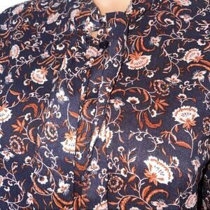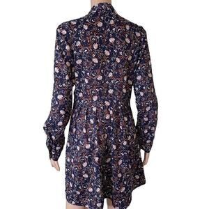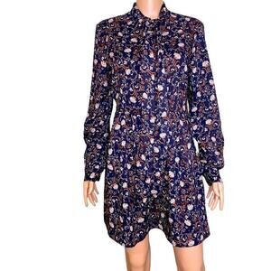 Wayf Tie Neck Long Sleeve Skater Dress ($98) liked on Polyvore navy, floral SZ M
