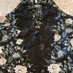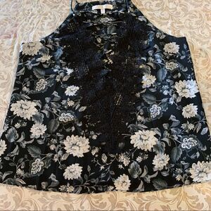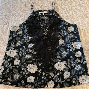Chest 34” x Length 20” Wayf Top Black Floral Spaghetti Straps Lined Blouse Size Medium