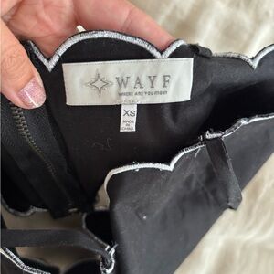 Chic two piece set by Wayf. Features scalloped trim. Ideal for stylish events.