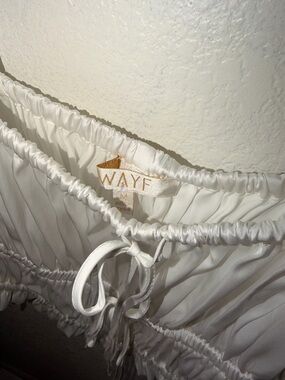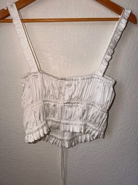 Wayf White Ruffled Drawstring Crop Tank