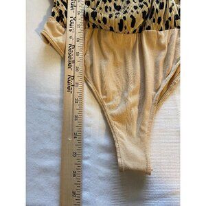 Wayf Womens Leopard Print Bodysuit XS Beige & Black Mock Wrap Front