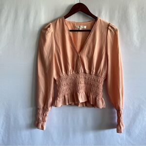Wayf Women's Peach Long Sleeve V Neck Top