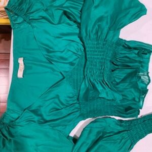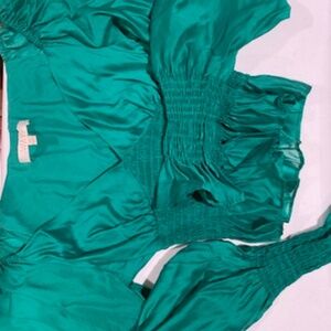 Soft satin material, extra long sleeves, blouse, xs, emerald green by trendy Wayf