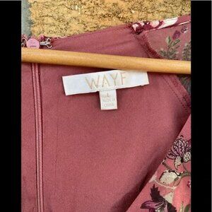 Super cute wayf dress Peachy pink blush color Floral Ruffle detailing Long sleeve Subtle v-neck In Excelent preowned condition no flaws Sold at Nordstrom Zipper back.