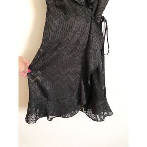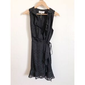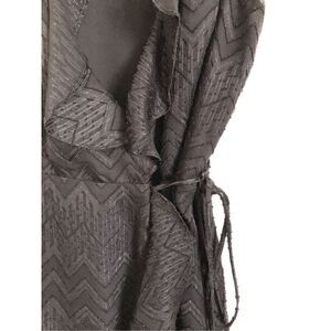 Details: sleeveless wrap dress with waist tie, double lined, muted chevron design,