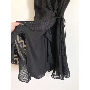 Waist is approx 15.25” (lightly draped), since this is a wrap dress it can wrap tighter
