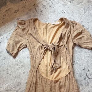 Wayf Beige Animal Print Tie-Front Dress S