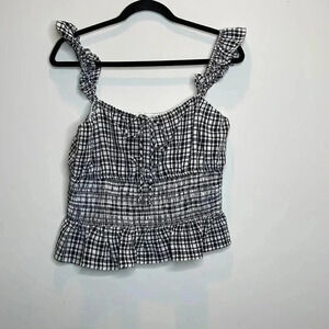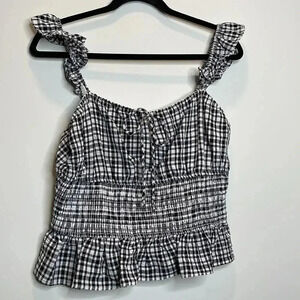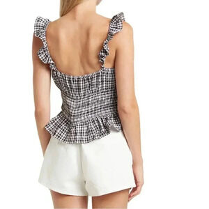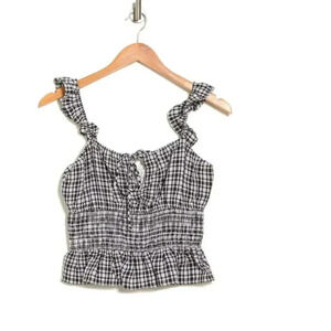 Wayf Black and White Checked smocked Waist top